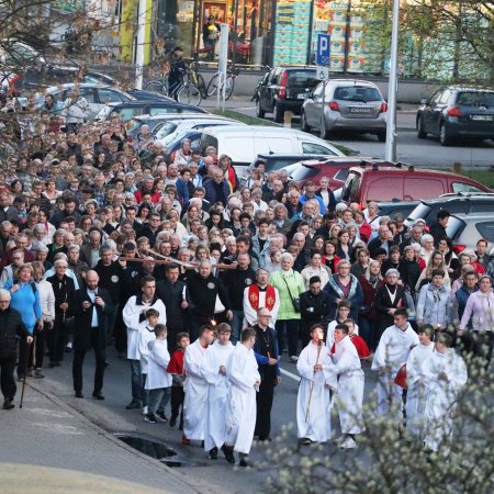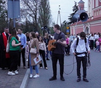 Po niej duchowni i wierni zgromadzili się na ul. Gomulickiego, skąd wyruszyli w trasę z modlitwą i pieśnią na ustach.