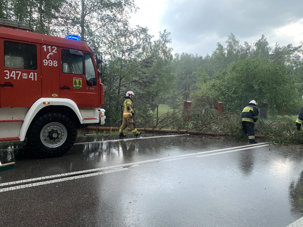 Podczas czwartkowej ulewy w miejscowości Gleba na jezdnię runęło drzewo. Na miejscu interweniował zastęp strażacki.
