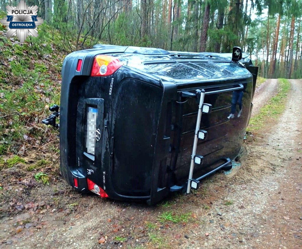 Do zdarzenia doszło w sobotę, 30 grudnia. Wtedy to właściciel hyundaia powiadomił policję o kradzieży. Krótko po zgłoszeniu samochód znaleziono na jednej z leśnych dróg. Auto było rozbite i leżało na boku.