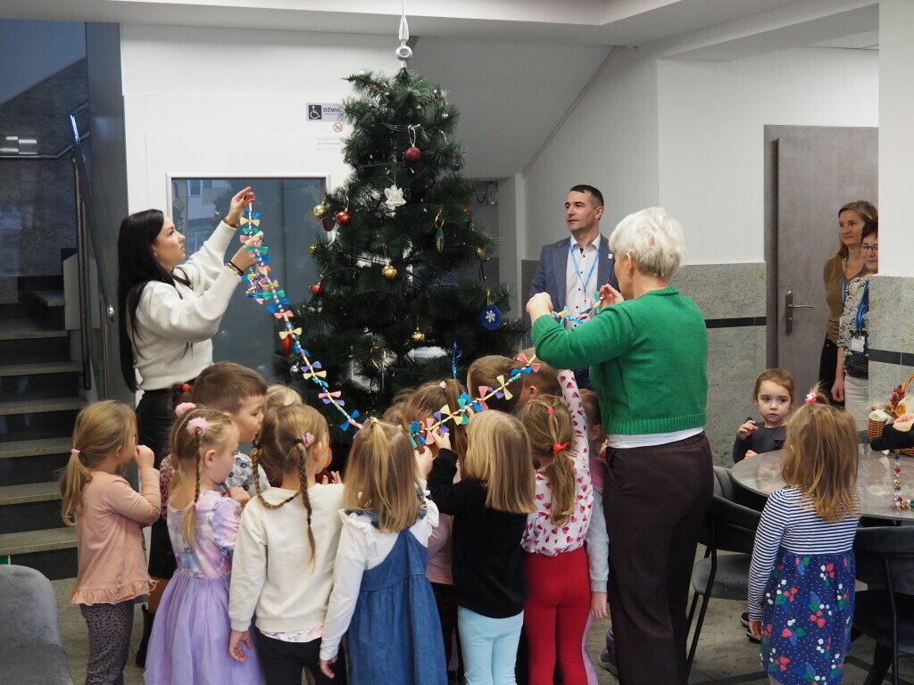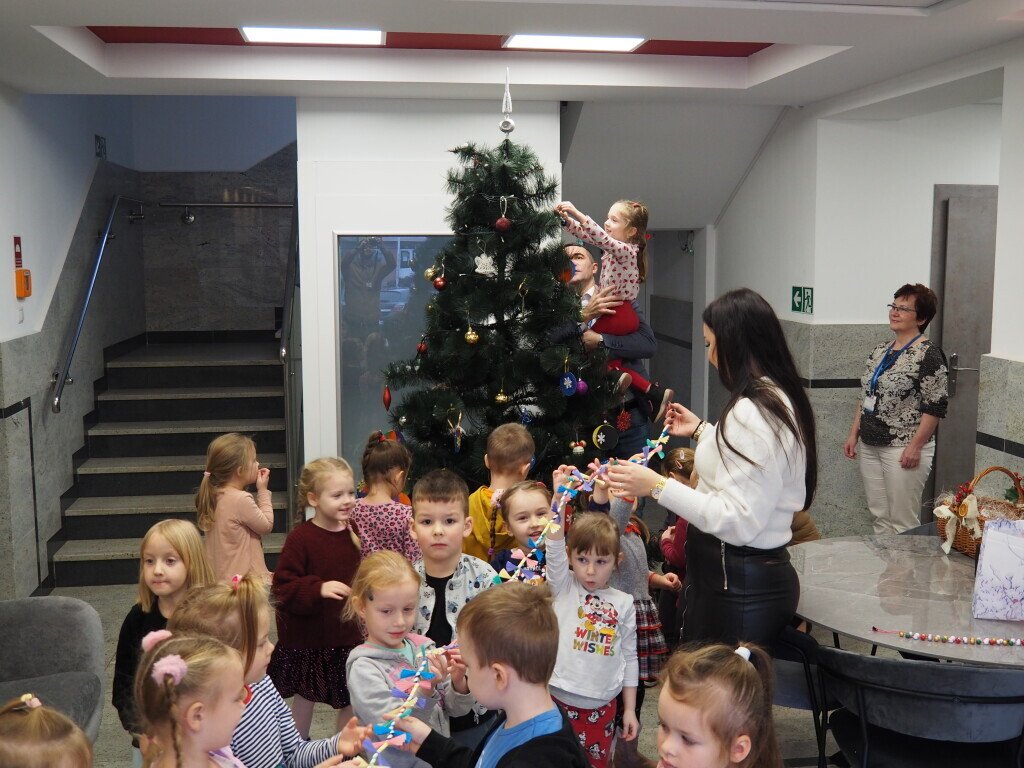 Dzieci z Przedszkola Samorządowego w Olszewie-Borkach przygotowały przepiękne, własnoręcznie wykonane ozdoby choinkowe, którymi udekorowały świąteczne drzewko, które stanęło w holu Urzędu Gminy.
