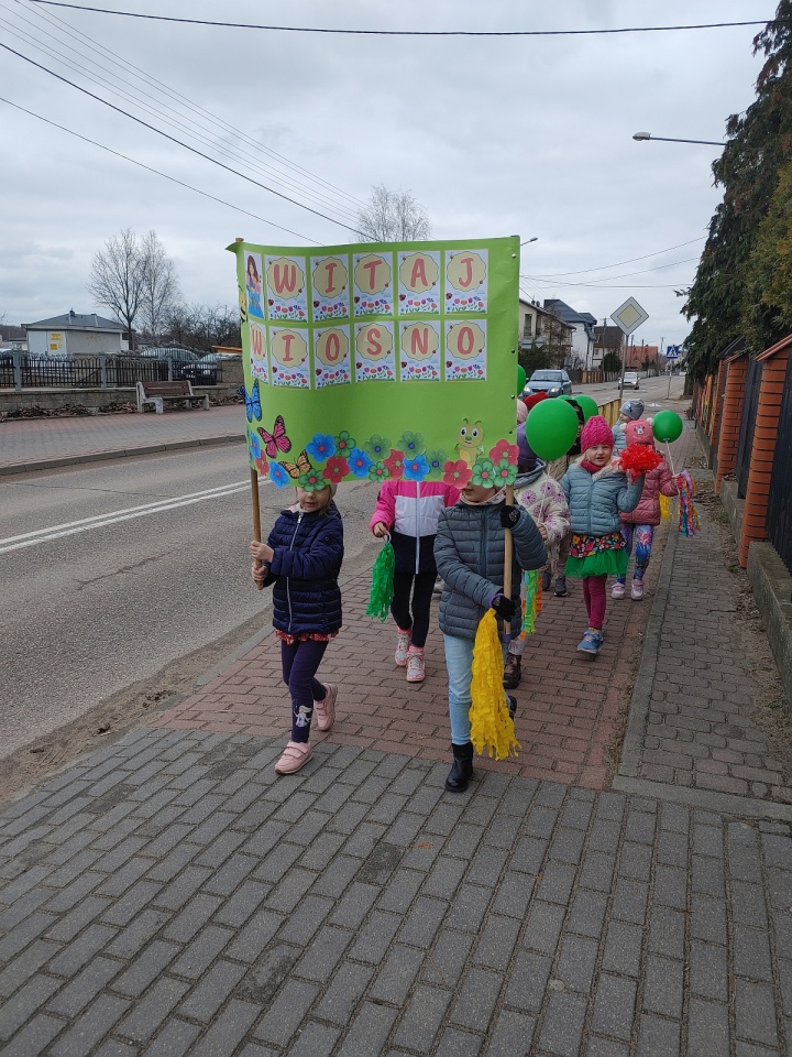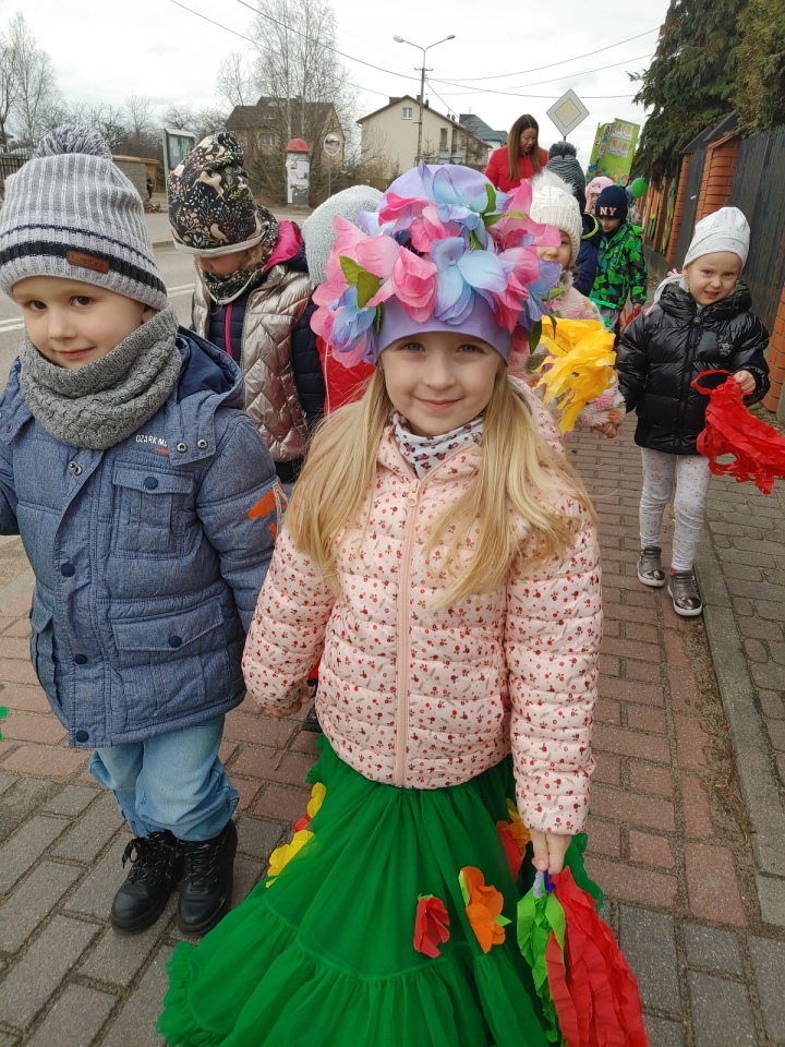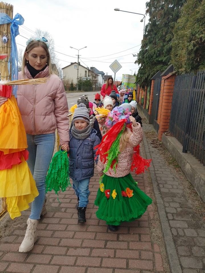 Dzieci barwnie i gwarnie, idąc w kolorowym orszaku ulicami osiedla Stacja, śpiewały na powitanie pierwszego dnia kalendarzowej wiosny.