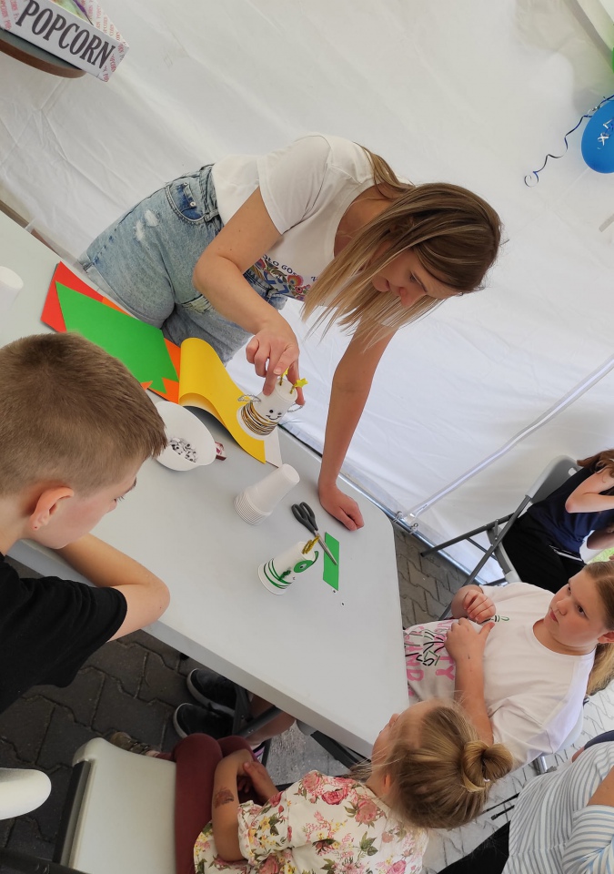 Na placu pojawiła się dmuchana zjeżdżalnia. Było malowanie twarzy i słodki poczęstunek, plecienie warkoczyków i wiele innych atrakcji. Ponadto rozpalono ognisko i pieczono kiełbaski.