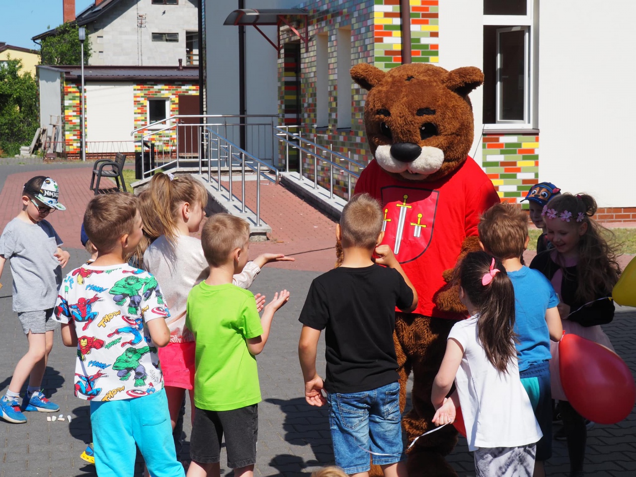 Dzieci z ogromnym entuzjazmem witały gminną maskotkę, bardzo chętnie się do niego przytulały i pozowały do zdjęć. Był to czas zabawy, radości i wielu uśmiechów.