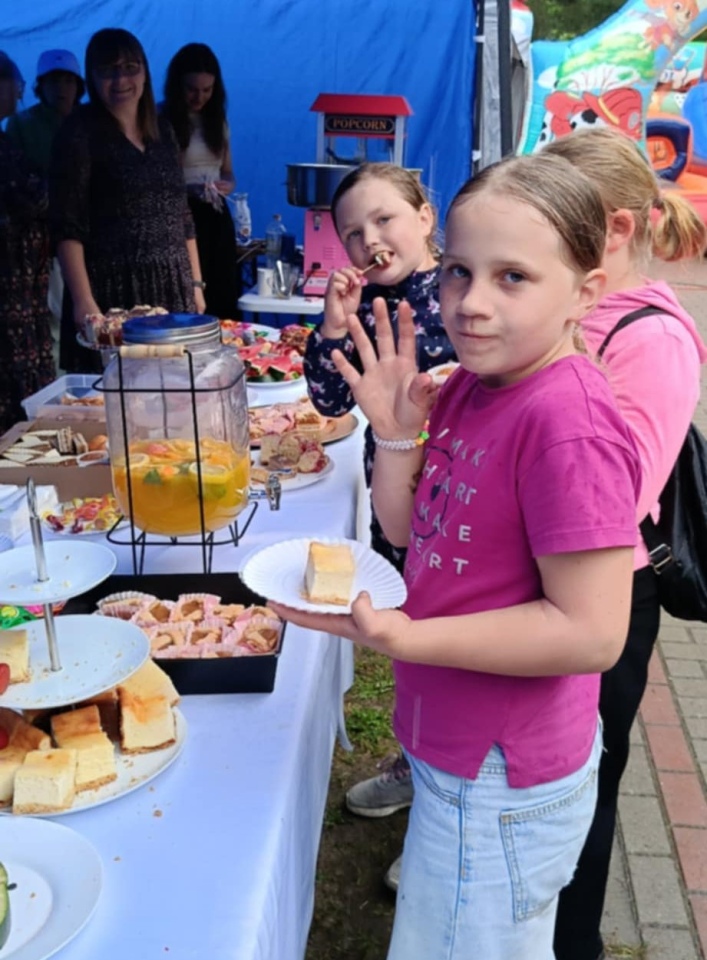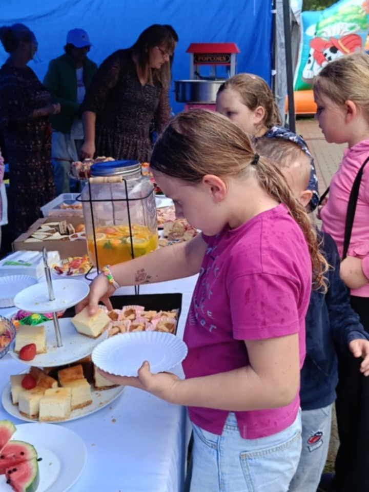Program festynu był pełen atrakcji i zapewnił rozrywkę dla każdego. Gdy tylko przestawało padać, najmłodsi bawili się na dmuchańcu, a w świetlicy zorganizowano seans kinowy. Nie zabrakło również kreatywnych zajęć.