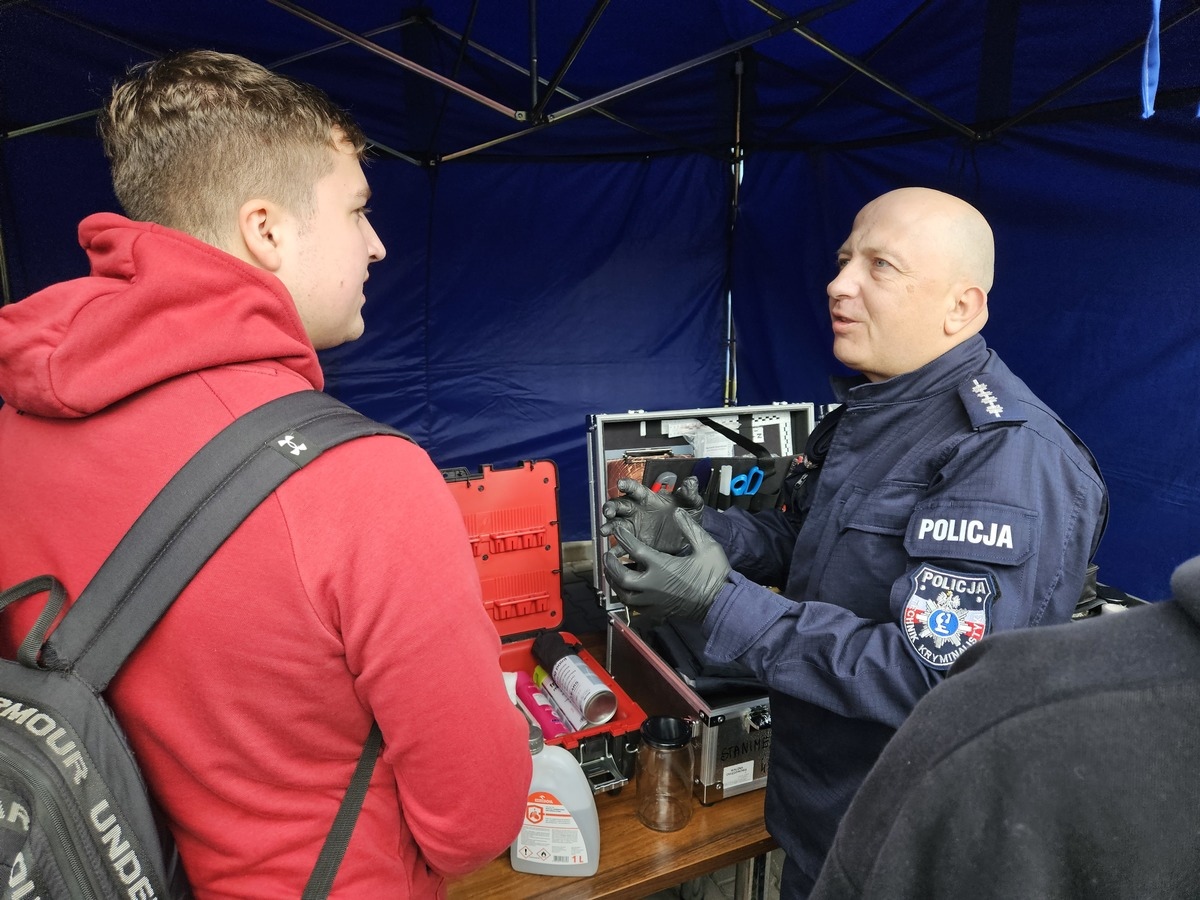 Jednym z najbardziej obleganych punktów programu była możliwość zapoznania się ze sprzętem wykorzystywanym przez techników kryminalistyki do zabezpieczania śladów oraz funkcjonariuszy z Samodzielnego Pododdziału Prewencji Policji w Ostrołęce.