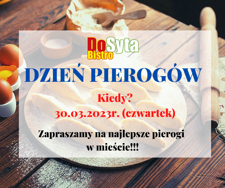Bistro do Syta po raz kolejny zaprasza na przepyszne pierogi domowej roboty! Dzień Pierogów już w najbliższy czwartek 30 marca.