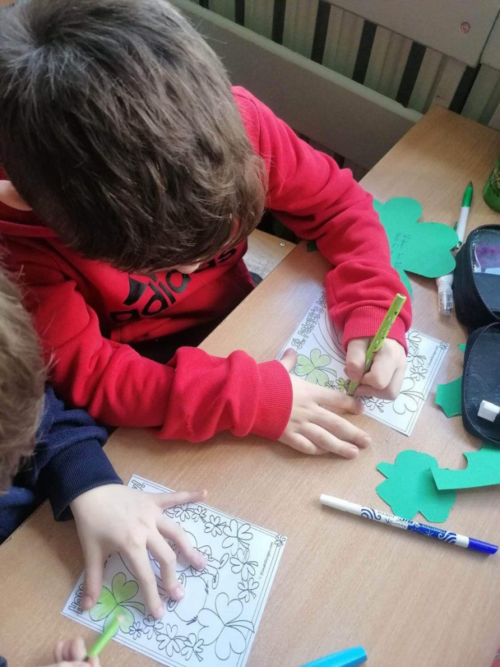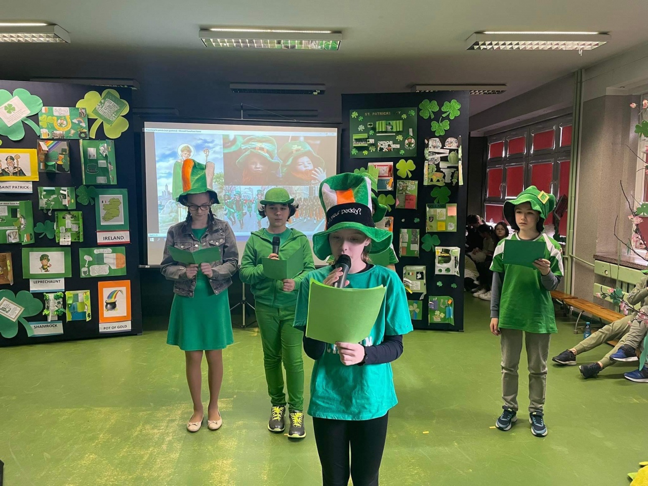 Na lekcjach języka angielskiego uczniowie poznali historię św. Patryka, obejrzeli filmy prezentujące historię Irlandii. Dzieci z oddziałów I-III też miały swój udział w tym święcie, mianowicie, kolorowały skrzata Leprechauna i szukały ukrytych w klasach trójlistnych koniczynek.