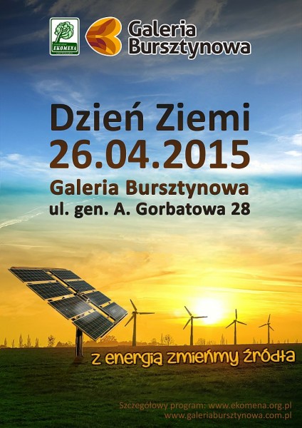 26 KWIETNIA NA TERENIE ZIELONYM PRZED GALERIĄ BURSZTYNOWĄ ORAZ NA PASAŻACH GALERII ODBĘDĄ SIĘ OBCHODY DNIA ZIEMI .GŁÓWNYMI ORGANIZATORAMI SĄ STOWARZYSZENIE ,,EKOMENA,,I GALERIA BURSZTYNOWA .W TYM DNIU BĘDZIE BARDZO DUŻO RÓŻNORODNYCH ATRAKCJI A TYM :