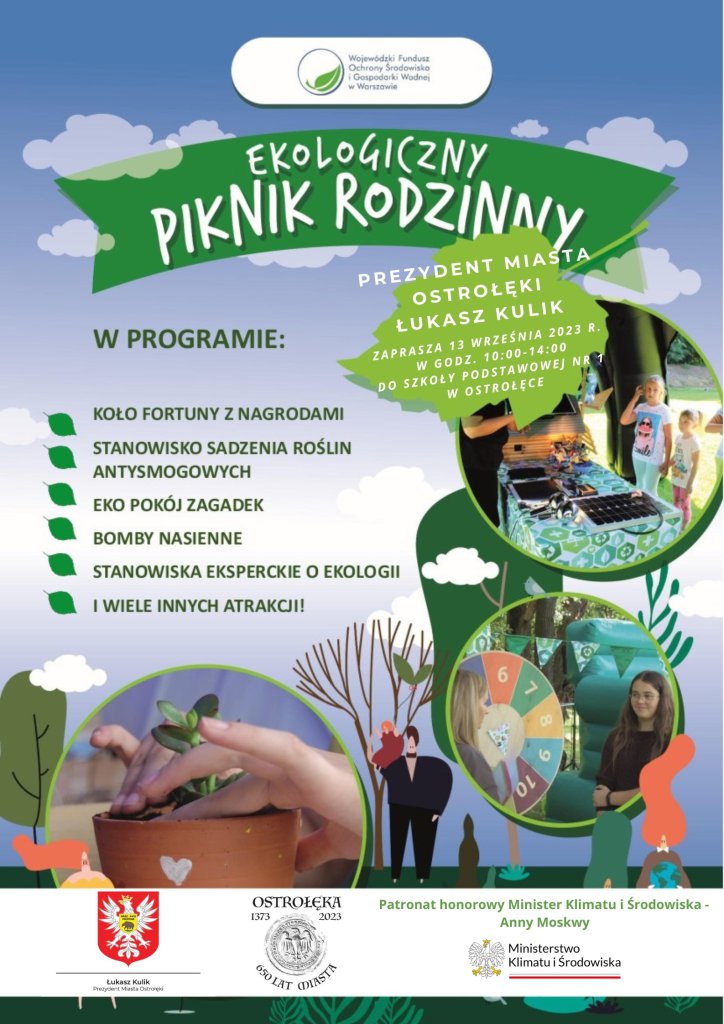 Ekologiczny piknik rodzinny, teren Szkoły Podstawowej nr 1 w Ostrołęce, 13 września w godz. 10:00-14:00.