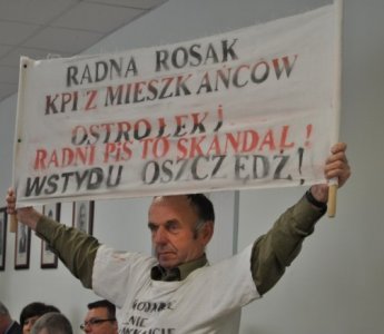 Podczas czwartkowej sesji radni byli wyjątkowo zgodni. Obyło się bez zbędnych dyskusji i docinków. Jak zwykle pojawił się za to w ratuszu emeryt Andrzej Szwelicki. Tym razem dzierżył transparent z hasłem „Radna Rosak kpi z mieszkańców Ostrołęki. Radni PiS to skandal! Wstydu oszczędź”. Szwelicki miał też hasła wymalowane na koszulce. „Włodarze, nie zamykajcie ust mediom i mieszkańcom” - głosił jeden z nich.