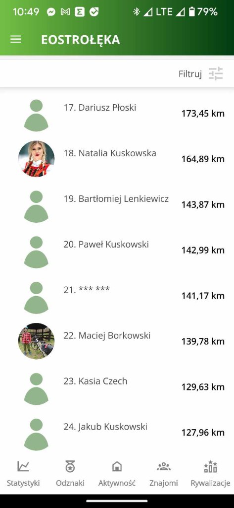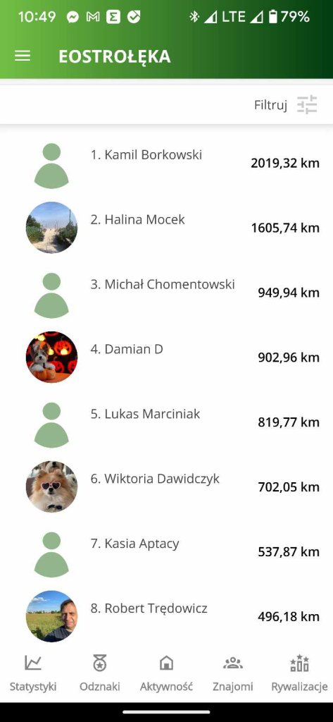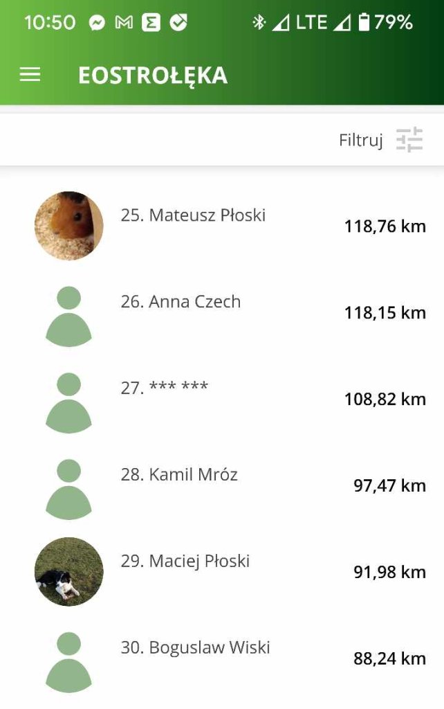 Lider naszej grupy przejechał w sumie 2 019,32 km. Osoba, która zajęła II miejsce wykręciła 1 605,74 km. Zacięta rywalizacja o trzecie miejsce na podium rozgrywała się do samej północy. Ostatecznie zdobywca trzeciego miejsca pokonał swojego rywala różnicą ponad 46 kilometrów, które pokonał tuż przed zakończeniem konkursu. Liderom gratulujemy!