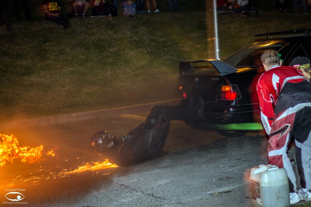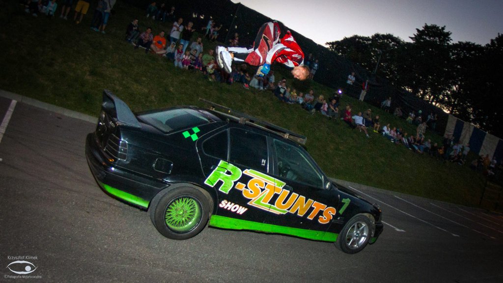 - przejazd przez ścianę ognia z człowiekiem na masce pojazdu;