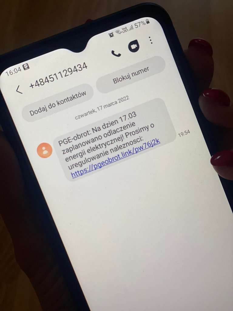 Fałszywe SMS-y kierowane są zarówno do klientów, jak i do osób niebędących klientami PGE. Informują o planowanym wyłączeniu energii w przypadku nieuregulowania rzekomych należności. Fałszywe powiadomienia SMS zawierają także komunikat o możliwości opłacenia należności bezpośrednio poprzez link, szybki przelew lub BLIK.