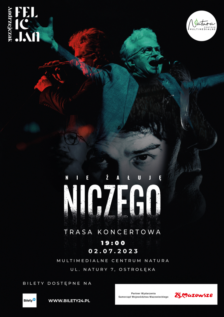 "Nie żałuję niczego" - to niezwykła trasa koncertowa wybitnego artysty Felicjana Andrzejczaka. W Ostrołęce wystąpi on 2 lipca. Koncert odbędzie się w Multimedialnym Centrum Natura.