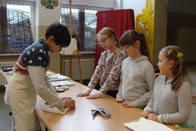 fot. UG w KadzidleW pierwszym tygodniu tegorocznych ferii zimowych w kadzidlańskiej bibliotece odbyły się warsztaty malarskie zorganizowane pod hasłem „Młody Matejko”. Pod czujnym okiem malarki Krystyny Sutuły dzieci uczyły się naciągać płótno na ramki, gruntować, komponować przestrzeń, mieszać farby, czyścić pędzle, posługiwać się sztalugą i paletą, malować. Pięcioro uczestników: Kasia Aptacy, Kalina Gadomska, Zuzia Marchewka, Dominika Trzcińska, Cyprian Łukaszewski, namalowali prawdziwe obrazy.