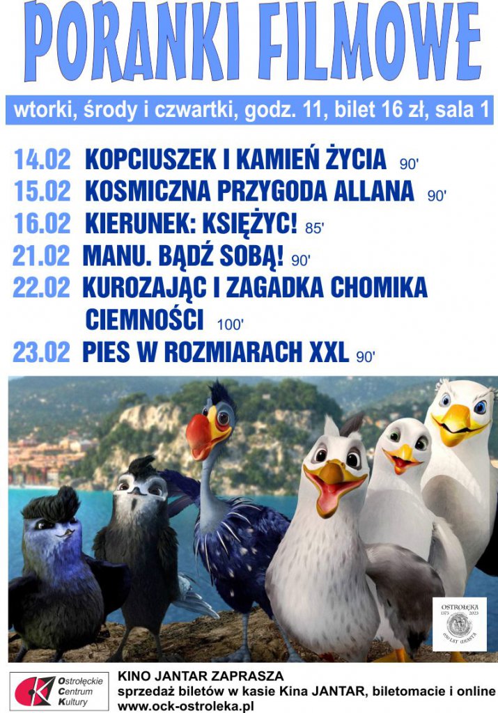 Poranki filmowe z Kinem Jantar to ciekawa propozycja na zbliżające się ferie zimowe, które w całym województwie mazowieckim rozpoczną się od 13 lutego i potrwają do 26 lutego.