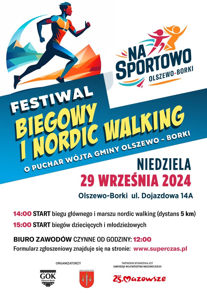 Gminny Ośrodek Kultury w Olszewie - Borkach zaprasza na Festiwal Biegowy i Nordic Walking „Olszewo-Borki na Sportowo”.