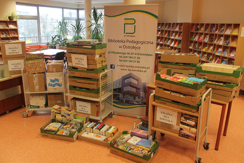 Biblioteka Pedagogiczna w Ostrołęce zorganizowała akcję pod hasłem „Mazowieckiego Szpitala Specjalistycznego im. dr. Józefa Psarskiego”. Zbiórka trwała od października do końca grudnia 2018 roku. Jej celem było podarowanie książek pacjentom Mazowieckiego Szpitala Specjalistycznego im. dr. Józefa Psarskiego w Ostrołęce.