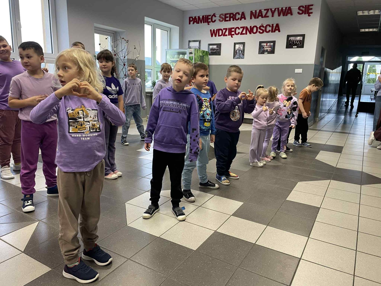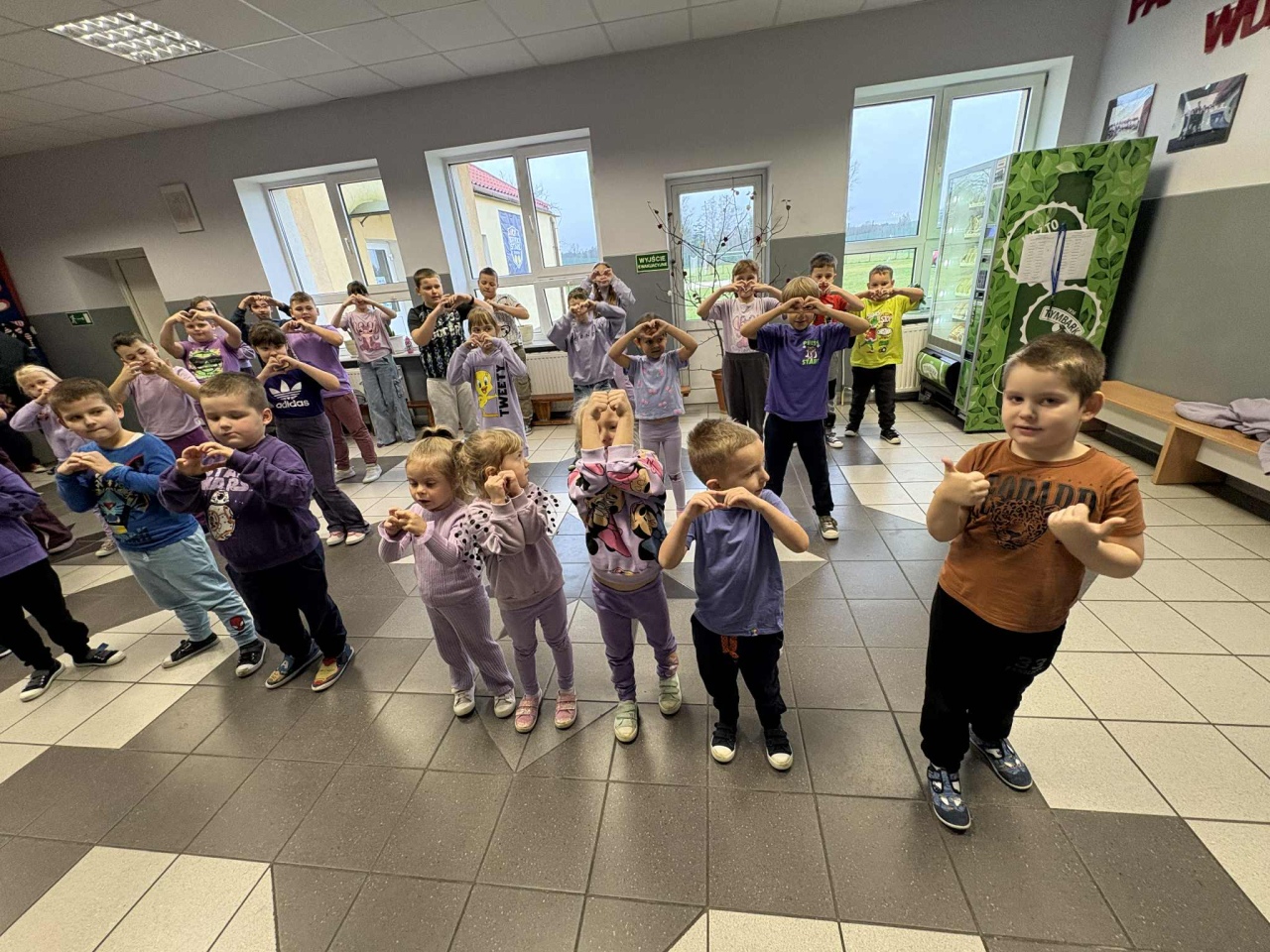 W poniedziałek, 17 listopada, szkolne korytarze i sala gimnastyczna wypełniły się kolorem fioletowym – symbolem wrażliwości i solidarności z „najmłodszymi wojownikami”. Tego dnia uczniowie, nauczyciele oraz pracownicy szkoły wzięli udział w dwugodzinnym maratonie zumby.