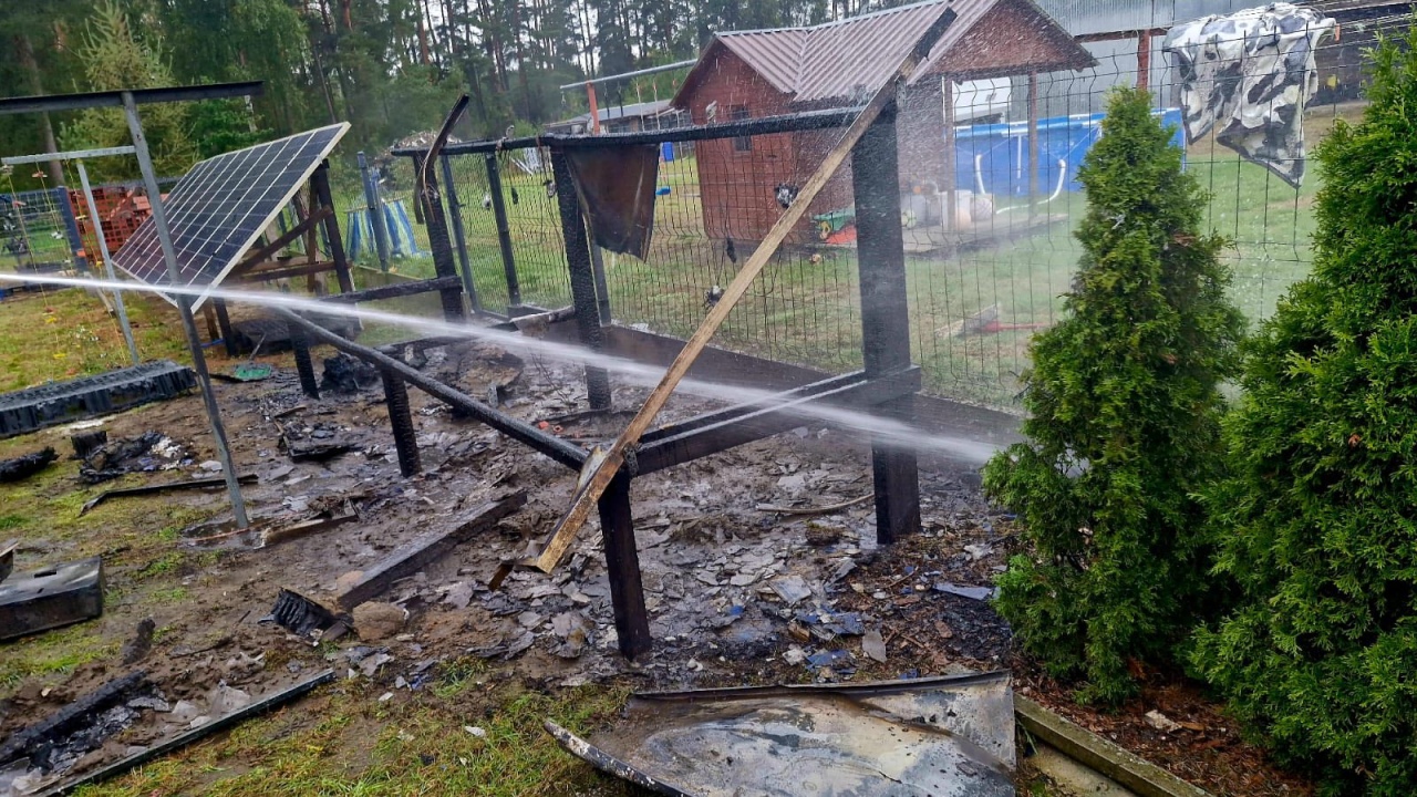 Działania strażaków polegały na szybkim ugaszeniu płomieni i zabezpieczeniu terenu. Mimo sprawnej interwencji, ogień strawił instalację niemal w całości. Na miejscu pozostały jedynie metalowe elementy konstrukcyjne, świadczące o skali zniszczeń.