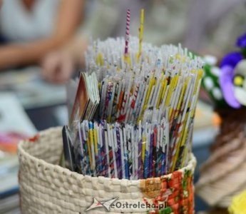 Uczestnicy warsztatów wikliniarskich wykonywali oryginalne koszyki ze ścinków gazetowych, fot. eOstrołęka.plUczestnicy warsztatów, dzieci, młodzież, dorośli jak i osoby starsze za pomocą cienkich wykałaczek do szaszłyków zawijali gazety w rurki będące podstawą do plecionych koszyków. Następnie po przyklejeniu kartonowej podstawki wykonywali oryginalne koszyki.