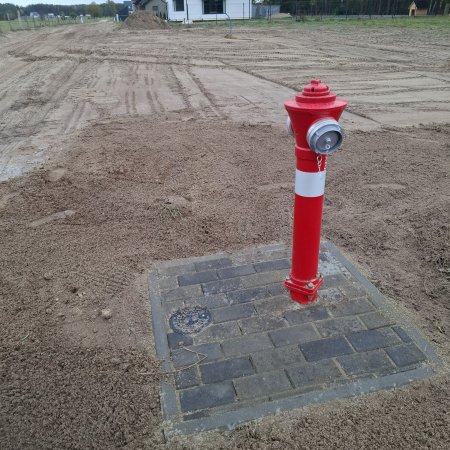 - Montaż 2 hydrantów przeciwpożarowych o średnicy 80 mm.