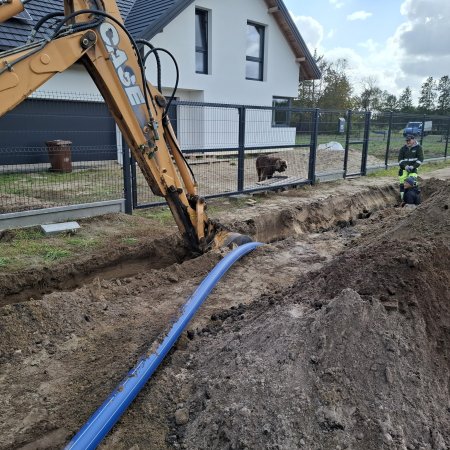 - Wykonanie 6 odejść wodociągowych do granic działek, umożliwiających przyszłe przyłącza.