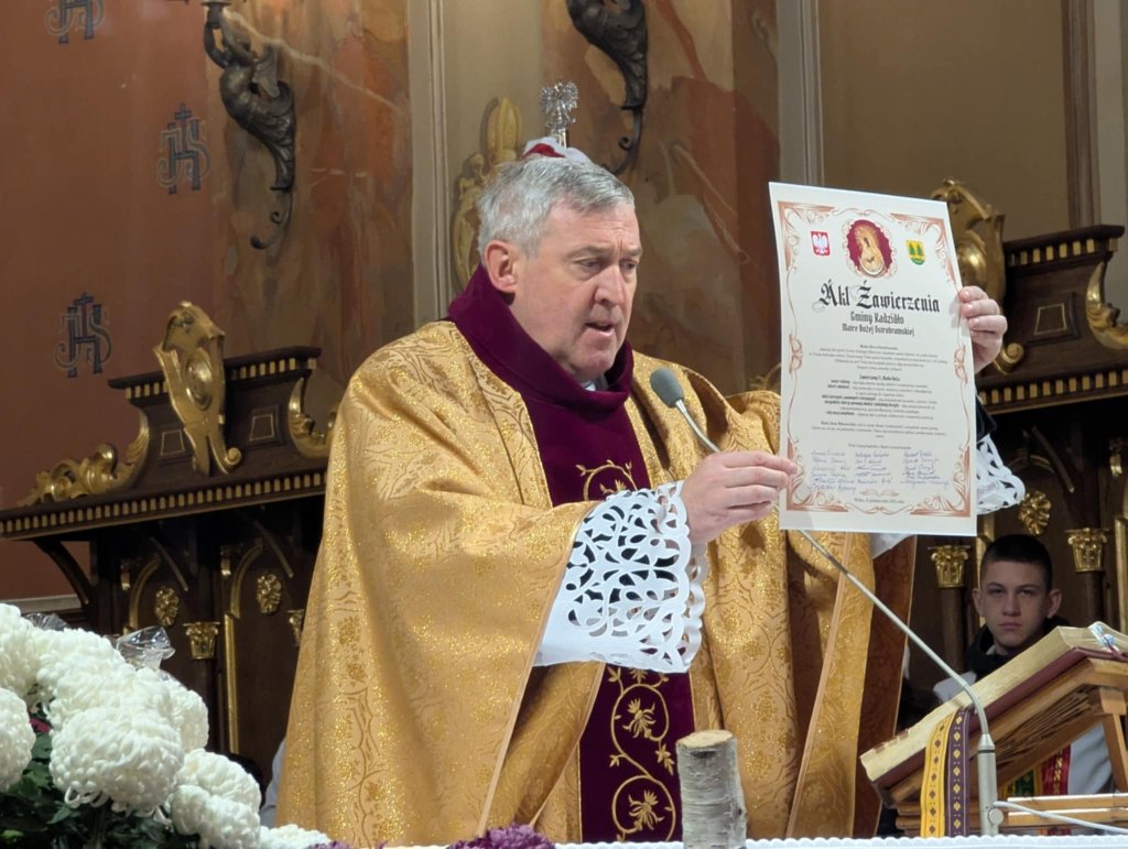 W niedzielę 23 listopada 2025 roku gmina Kadzidło przeżyła wyjątkową chwilę. Podczas uroczystej mszy świętej wójt Anna Śniadach odczytała akt zawierzenia gminy Matce Bożej Ostrobramskiej.