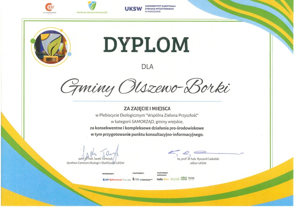 Gmina Olszewo-Borki triumfowała w ogólnopolskim plebiscycie "Wspólna Zielona Przyszłość", zdobywając pierwsze miejsce w kategorii samorząd, gminy wiejskie. Uroczysta gala podsumowująca projekt odbyła się we wtorek, 4 marca, w Auli Schumana na kampusie Wójcickiego Uniwersytetu Kardynała Stefana Wyszyńskiego w Warszawie.