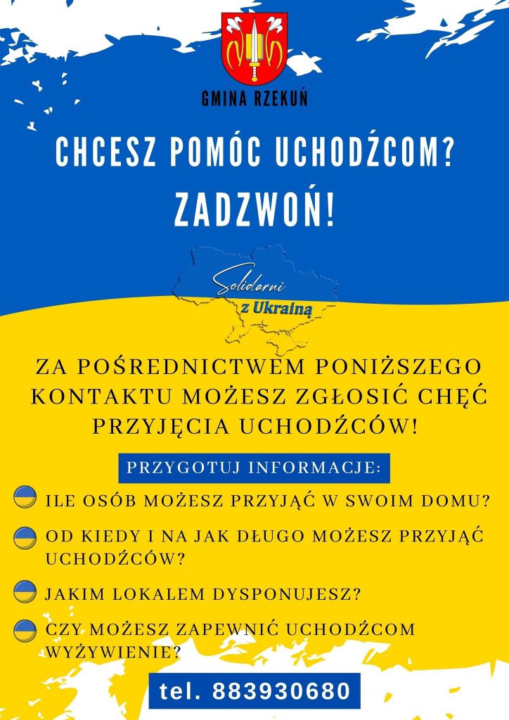 Gmina Rzekuń poszukuje osoby chętne do pomocy uchodźcom z Ukrainy. Potrzebni są także gminni wolontariusze, którzy zaangażują się w prowadzone przez samorząd działania.