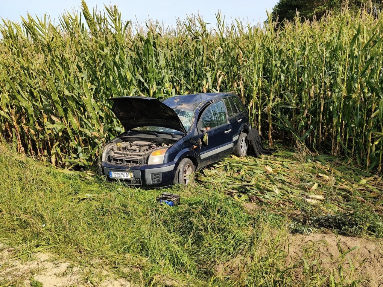 W sobotnie przedpołudnie doszło do niebezpiecznego zdarzenia drogowego na trasie pomiędzy Troszynem a Chrzczonami. Kierujący samochodem osobowym marki Ford stracił panowanie nad pojazdem, w wyniku czego zjechał z drogi i zakończył podróż na pobliskim polu kukurydzy.