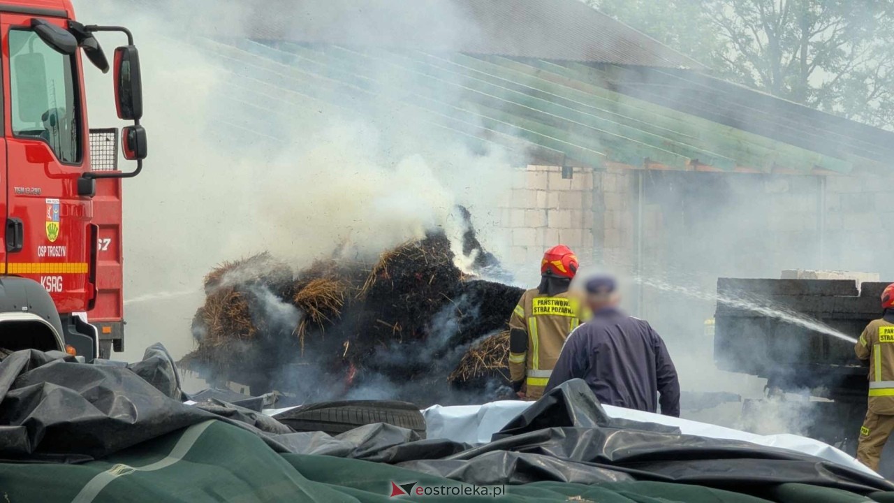 Z uwagi na realne zagrożenie rozprzestrzenienia się ognia na pobliskie zabudowania, na miejsce natychmiast skierowano kilka jednostek straży pożarnej. Akcja gaśnicza była wyjątkowo trudna – słoma to materiał łatwopalny, a dodatkowym utrudnieniem były warunki atmosferyczne sprzyjające rozprzestrzenianiu się ognia.