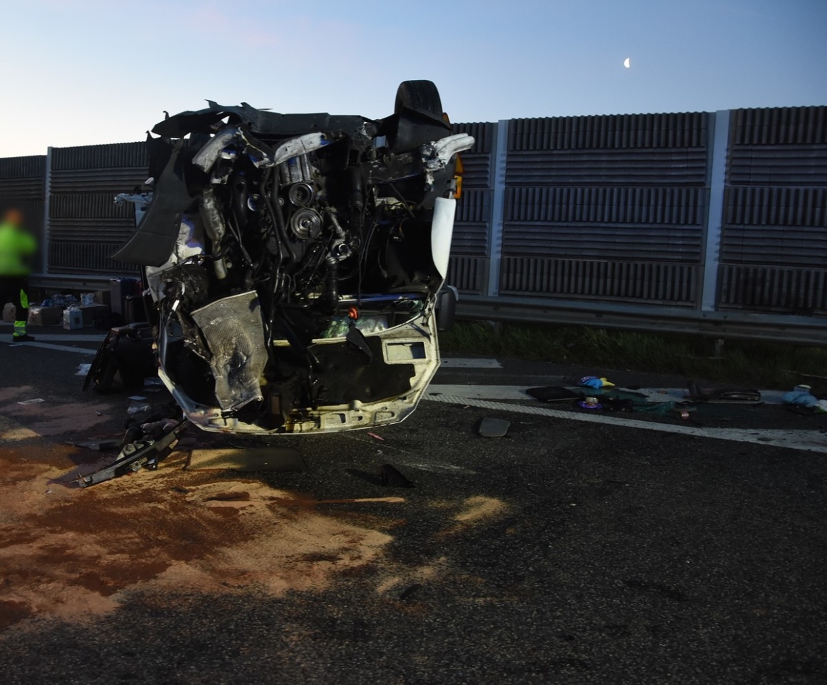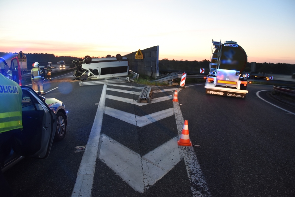– Jak wstępnie ustalili pracujący na miejscu funkcjonariusze, 50-letni obywatel Ukrainy, kierujący volkswagenem typu bus, będąc na łuku drogi zjechał na prawe pobocze, uderzając w bariery energochłonne, czego skutkiem było dachowanie pojazdu.