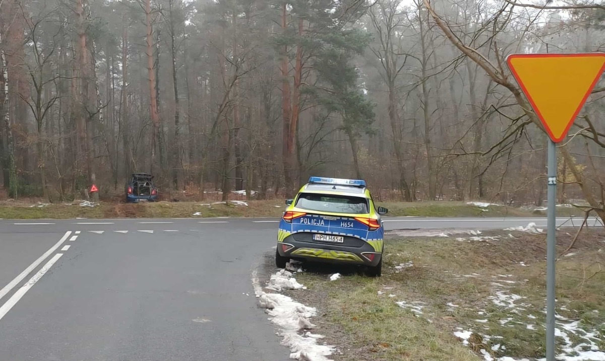 Konsekwencje były natychmiastowe. 47-latka siedząca za kierownicą osobowego nissana przejechała przez skrzyżowanie na wprost, zjechała na pobocze, a jej podróż zakończyła się uderzeniem w drzewo. Siła uderzenia była na tyle duża, że kierująca doznała obrażeń ciała.