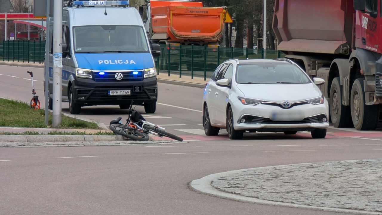 Do wypadku doszło przed godziną 9:00. Kierujący samochodem osobowym marki Toyota potrącił osobę, która przejeżdżała przez rondo korzystając z oznakowanego przejazdu dla rowerzystów.
