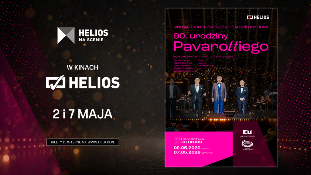 W nadchodzącym tygodniu Helios zaprasza na różnorodne seanse specjalne. Wśród nich znajdzie się koncert „90. urodziny Pavarottiego” – wyjątkowy hołd dla jednego z najsłynniejszych głosów w historii muzyki, który zawita do wybranych kina 2 i 7 maja. Koncert z legendarnego werońskiego amfiteatru to wiązanka ponadczasowych arii operowych w wykonaniu między innymi José Carrerasa i Plácido Domingo – dwóch z Trzech Tenorów – oraz Andrei Bocellego.