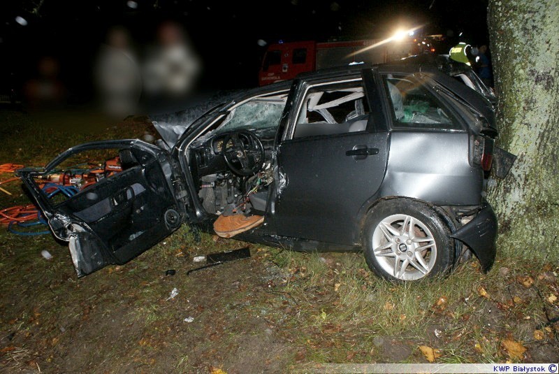 - Ze wstępnych ustaleń policji wynika, że 19-latek kierujący seatem, jadąc w kierunku Augustowa, najprawdopodobniej nie zauważył zatrzymujących się przed nim pojazdów. Hamując zjechał na lewy pas jezdni zahaczając wcześniej o stojącego przed nim nissana, a następnie zderzył się czołowo z nadjeżdżającym z przeciwka ciężarowym dafem. W wyniku wypadku na miejscu zginął 19-letni pasażer ibizy, a jego również 19-letni kierowca z urazem głowy oraz nogi został przewieziony do szpitala. Badanie alkomatem wykazało, że wszyscy trzej kierujący byli trzeźwi. - poinformował oficer prasowy KPP w Sokółce