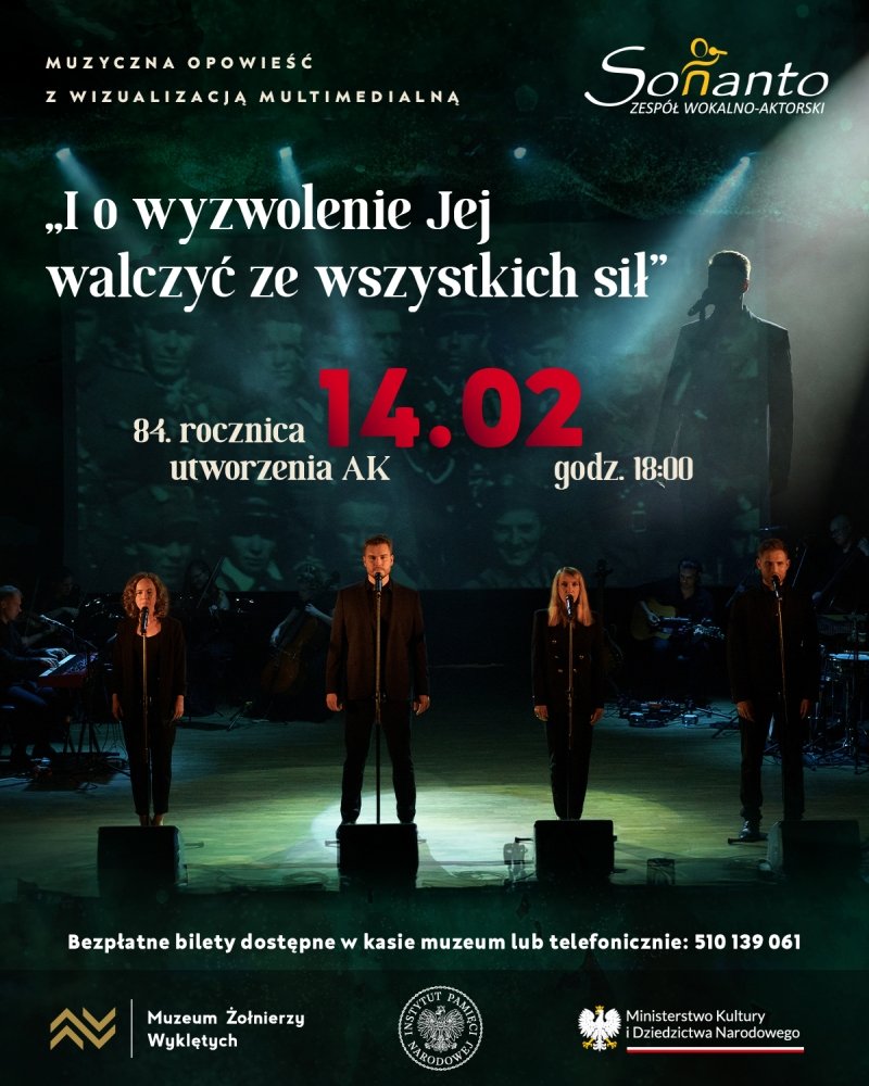 Muzeum Żołnierzy Wyklętych w Ostrołęce zaprasza na uroczyste obchody 84. rocznicy utworzenia Armii Krajowej. Już w sobotę, 14 lutego będzie można uczestniczyć w niezwykłym widowisku muzycznym przygotowanym przez zespół Sonanto.