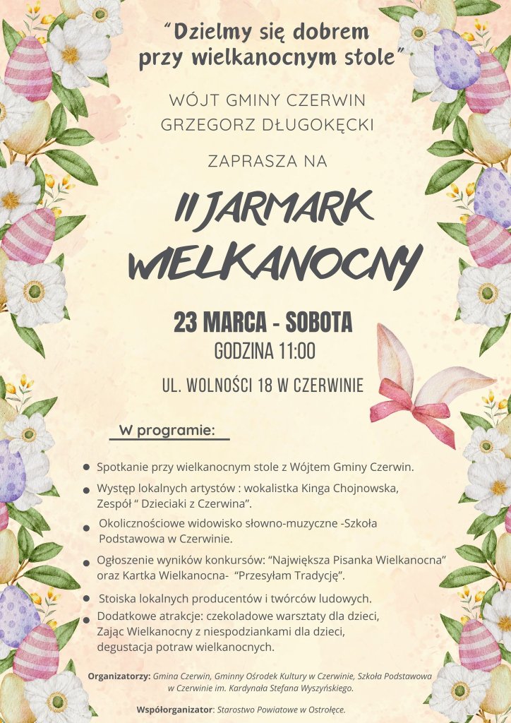 II Czerwiński Jarmark Wielkanocny, 23 marca 2024 r., Targowisko wiejskie "Mój Rynek" w Czerwinie, ul. Wolności 18.