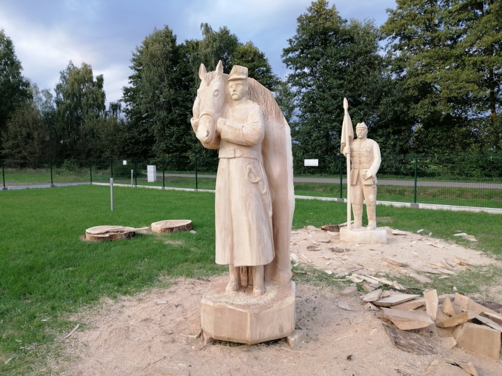 Spod pił i dłut artystów wyszły postacie żołnierzy, ułanów i marynarzy walczących w 1920 roku na froncie sowieckim przetaczającym się przez tereny obecnej gminy Rzekuń. Artyści wykonali także postacie świętych patronów. A jeden z pni – jako atrakcja dla najmłodszych mieszkańców – przyjął postać zabawnego smoka.