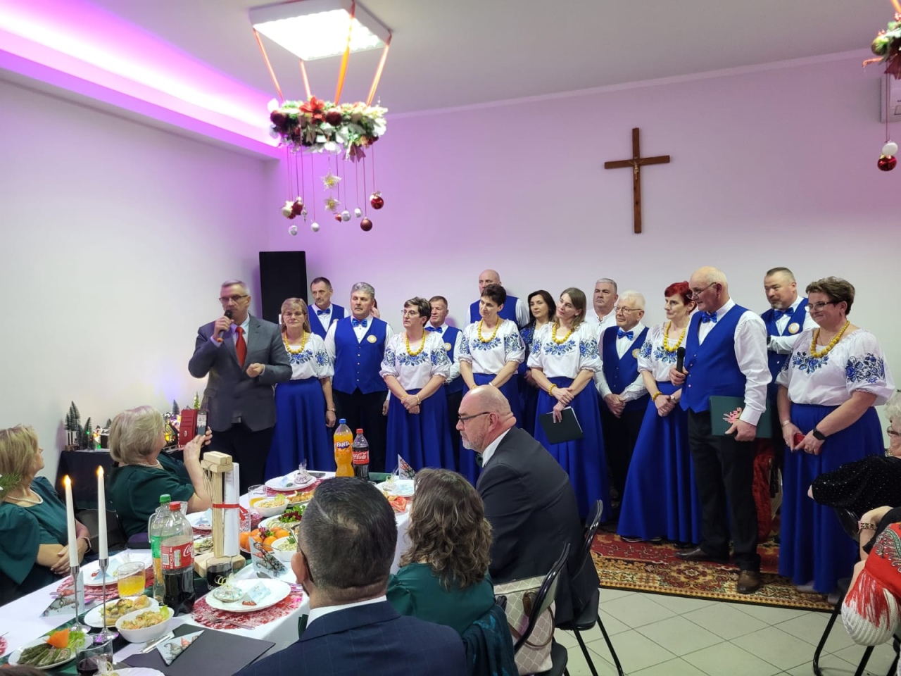 Spotkanie rozpoczęło się od najważniejszego elementu polskiej tradycji wigilijnej – przełamania się opłatkiem. Uczestnicy złożyli sobie serdeczne życzenia, co wprowadziło wszystkich w podniosły, a zarazem radosny nastrój.