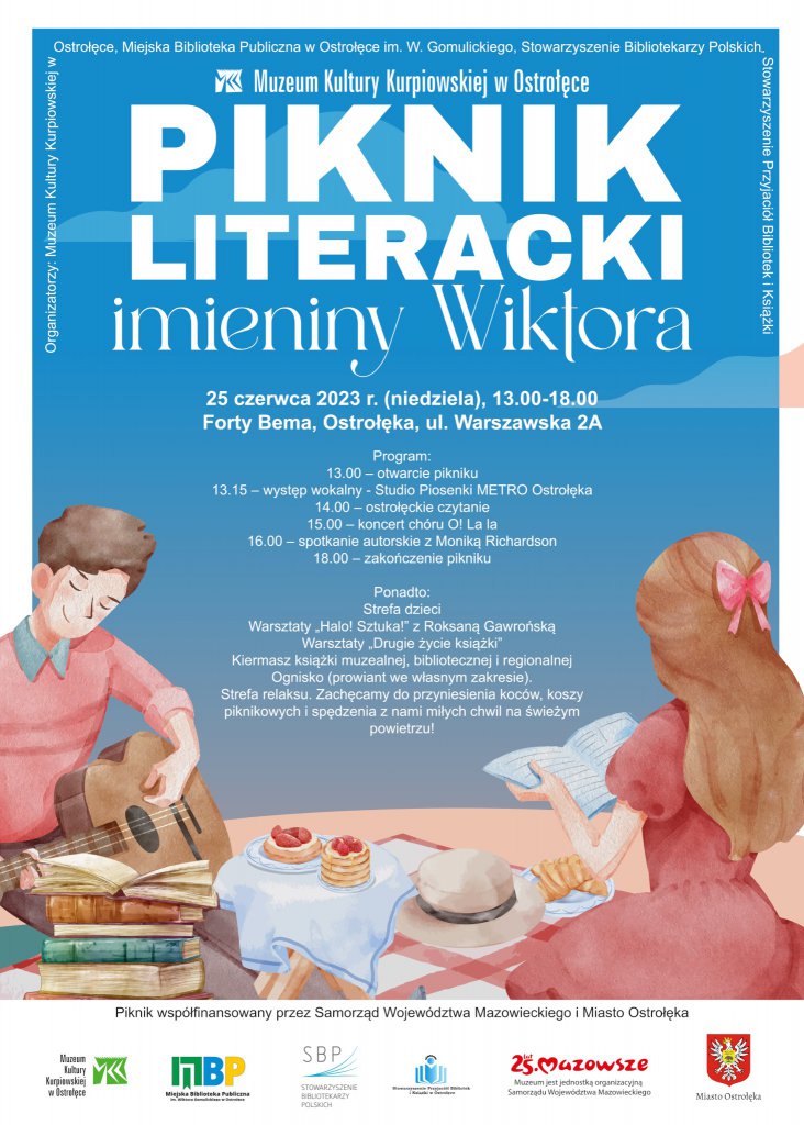 Muzeum Kultury Kurpiowskiej w Ostrołęce zaprasza do udziału w pikniku literackim „Imieniny Wiktora”, który odbędzie się 25 czerwca 2023 r. (niedziela) w godz. 13.00-18.00 na Fortach Bema w Ostrołęce przy ul. Warszawskiej 2A.
