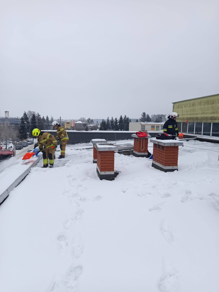 Zima potrafi zaskoczyć nie tylko drogowców, ale i zarządców budynków wielkopowierzchniowych. Tym razem wyzwanie stanowiła gruba pokrywa śniegu zalegająca na dachu kadzidlańskiej hali sportowej. Masa białego puchu, choć z pozoru malownicza, przy dużym nagromadzeniu stanowi realne zagrożenie dla konstrukcji budynku.