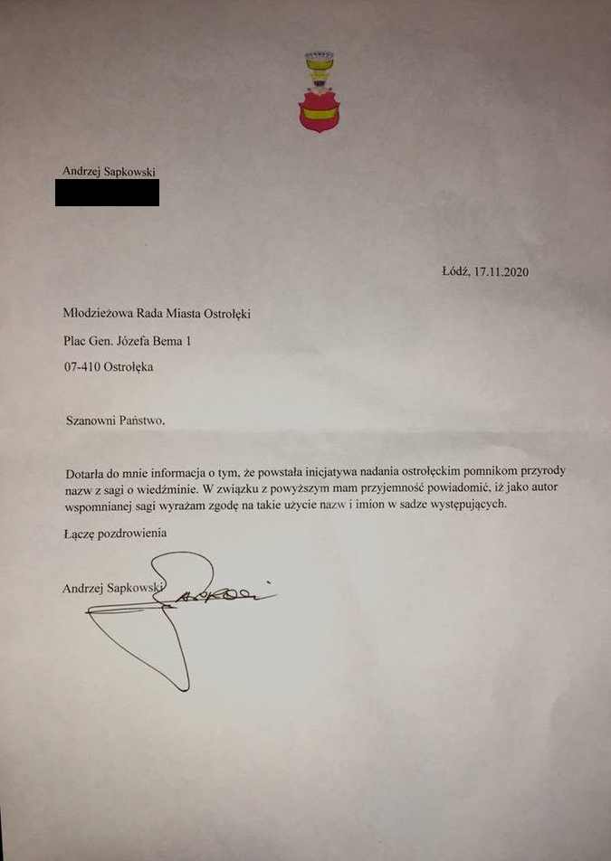 Co ciekawe, zgody na nazwanie tak pomników przyrody w Ostrołęce udzielił sam autor Andrzej Sapkowski.