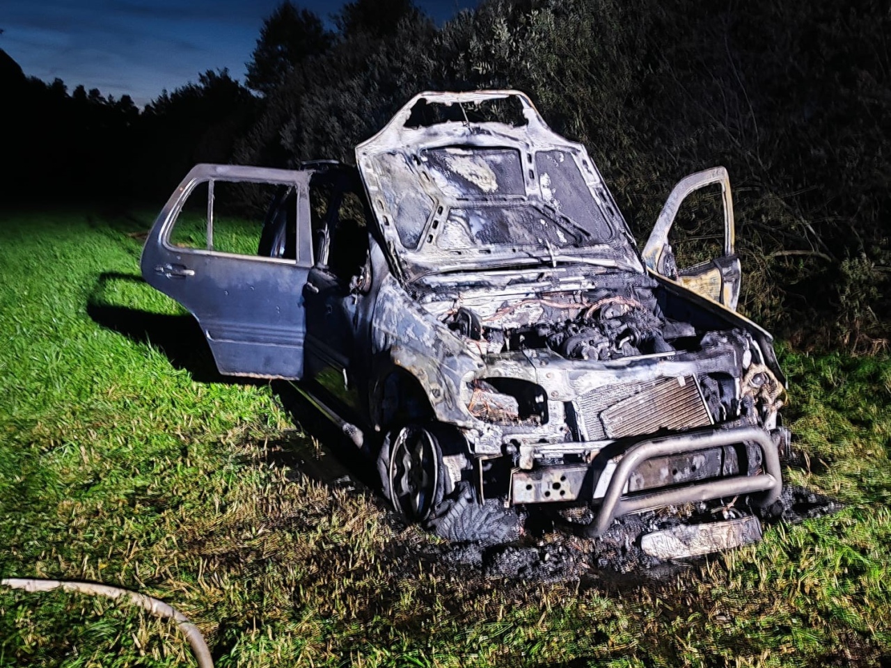 W sobotni wieczór strażacy interweniowali w związku z pożarem samochodu osobowego w miejscowości Wach w gminie Kadzidło. Gdy dotarli na miejsce, ich oczom ukazał się niecodzienny widok. Luksusowy SUV stał w płomieniach, jednak okoliczności zdarzenia od początku budziły zdumienie.