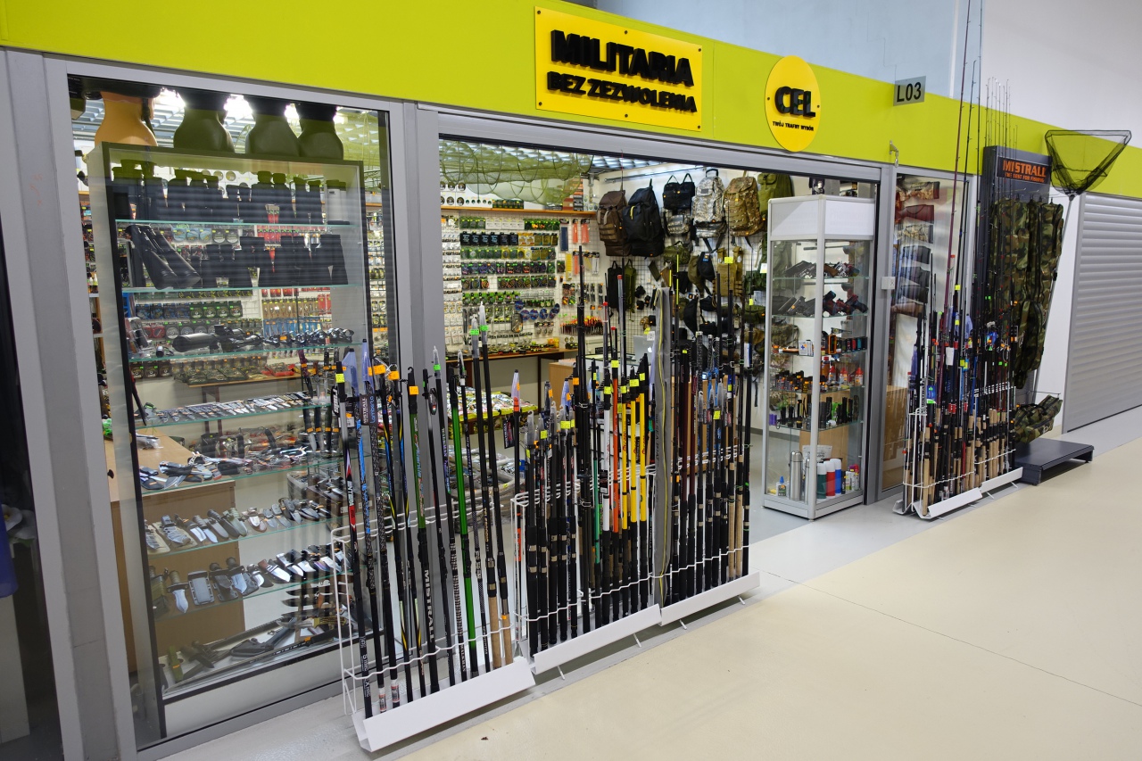 Zaglądamy do alejki limonkowej, gdzie znajduje się sklep "Cel" - uwaga, w nowej lokalizacji, w lokalu L-03. Najłatwiej trafić przez główne wejście od ul. Prądzyńskiego, od strony postoju taxi. Sklep oferuje artykuły militarne bez zezwolenia. Wszystkie produkty, jakie tu znajdziecie nie wymagają żadnych uprawnień przy zakupie! Dodatkowo, trzeba wspomnieć o rozszerzonym asortymencie o artykuły wędkarskie.