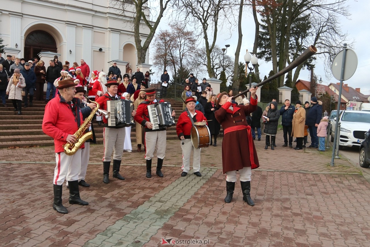 Na czele korowodu - "duże ludzie", czyli szczudlarze. Dalej święta rodzina, kurpiowska kapela, święty Mikołaj, zespół Kurpianka, a także władze gminy, zaproszeni goście i mieszkańcy.
