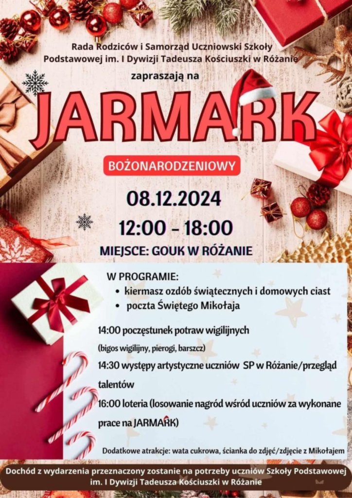 Cały dochód z jarmarku zostanie przekazany na potrzeby uczniów Szkoły Podstawowej im. I Dywizji Tadeusza Kościuszki w Różanie.