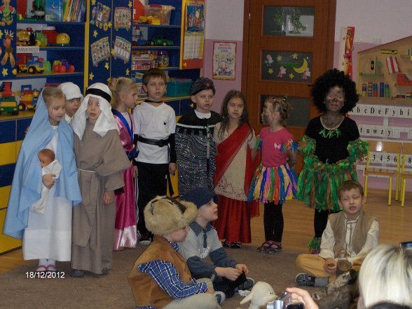 Oprócz aniołków, pasterzy, królów na scenie wystąpili również Hindusi, Eskimosi, Afrykanie, Indianin, Hawajki, Chińczycy, Arab oraz... Kurpianka. Występ wzruszył wszystkich przybyłych gości, którzy ukradkiem ocierali łzy wzruszenia. Po występie dzieci podzieliły się opłatkiem ze swoimi najbliższymi oraz wręczyli rodzicom własnoręcznie wykonane świąteczne kartki.