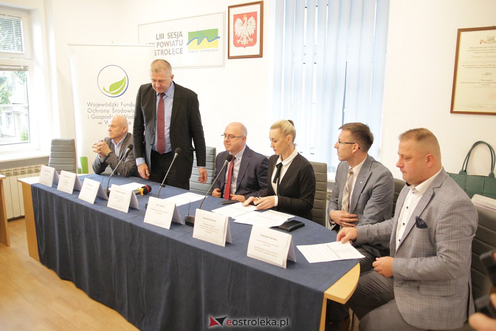 W środę 5 października w Starostwie Powiatowym w Ostrołęce odbyło się oficjalne podpisanie kilkunastu umów na dofinansowanie jednostek OSP między przedstawicielami WFOŚiGW a reprezentacjami poszczególnych jednostek i samorządów, za pośrednictwem których środki zostaną przekazane. W spotkaniu uczestniczyli m.in. zastępca prezesa WFOŚiGW w Warszawie Kamila Mokrzycka, dyrektor WFOŚiGW Radosław Stachacz, starości ostrołęccy - Stanisław Kubeł i Krzysztof Parzychowski.